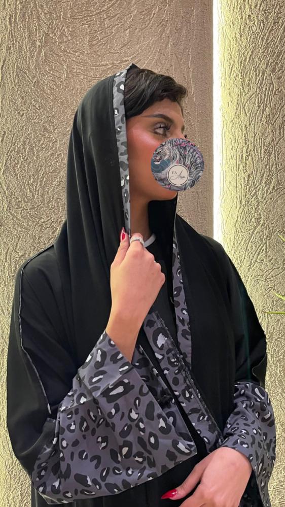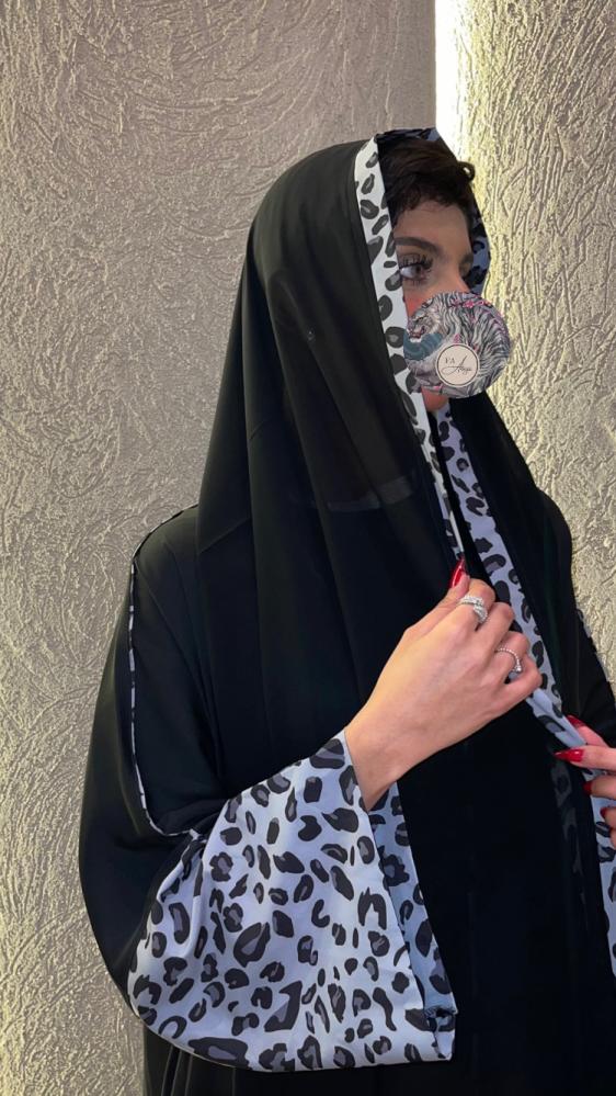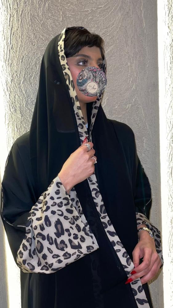 نوع القماش : البوكلية - طبعة النمر بألوان فالأكمام والطرحة